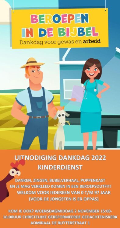 Oud-Beijerland - Op Woensdag 2 november om 15:00 tot 16:00 uur is er een kinderdagdienst in de Chr. Ger. Gedachteniskerk aan de Adm. de Ruyterstraat 1 in Oud-Beijerland.