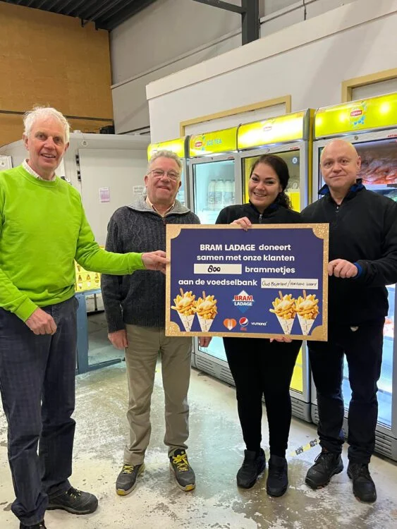 Wat werden ze verrast bij de Voedselbank Hoeksche Waard door de gift van maar liefst 800 ‘brammetjes’, oftewel 800 zakjes patat van Bram Ladage.