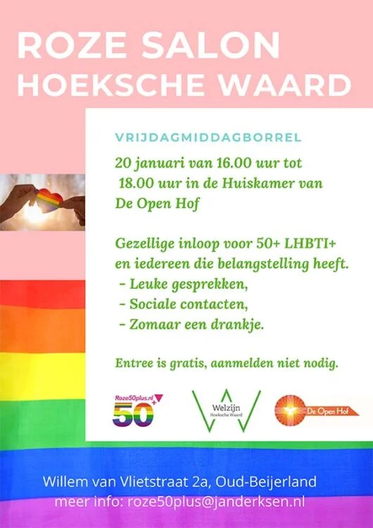 Vrijdag 20 januari vindt de Roze Salon weer plaats. Tijdens dit leuke initiatief van Roze 50+, Welzijn Hoeksche Waard en de Open Hof zijn 50+ LHBTI-ers, hun buren, vrienden of…