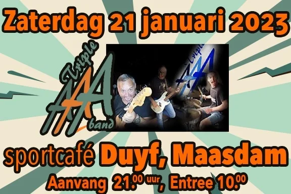 21 Januari treedt coverband Triple A op in sportcafé Duyf