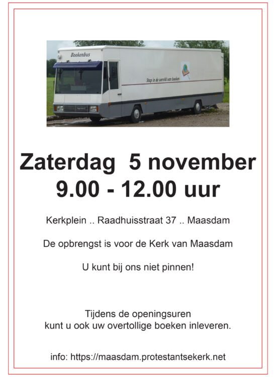 De boekenbus komt zaterdag 5 november weer naar Maasdam
