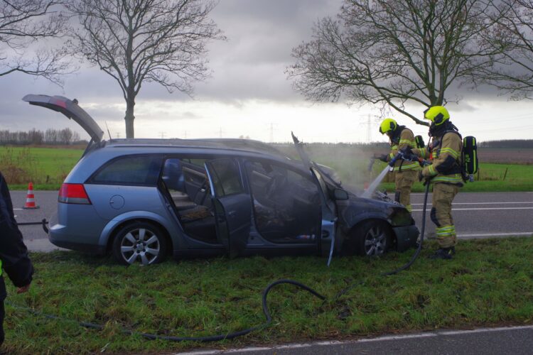 Auto vliegt in brand na kopstaart botsing aan de Maasdamseweg in ‘s-Gravendeel