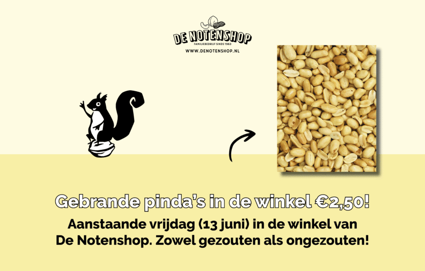Alleen vrijdag 13 juni: Gebrande pinda’s gezouten of ongezouten 500 gram in de winkel van De Notenshop!