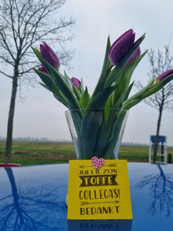 Veel leerlingen en leerkrachten op de Bouwsteen zitten momenteel thuis, hart onder de riem voor leerkrachten met Hollandse tulpen