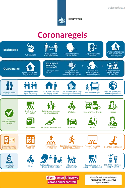 De meeste locaties in ons land gaan woensdag 26 januari weer open onder voorwaarden bekijk hier de maatregelen
