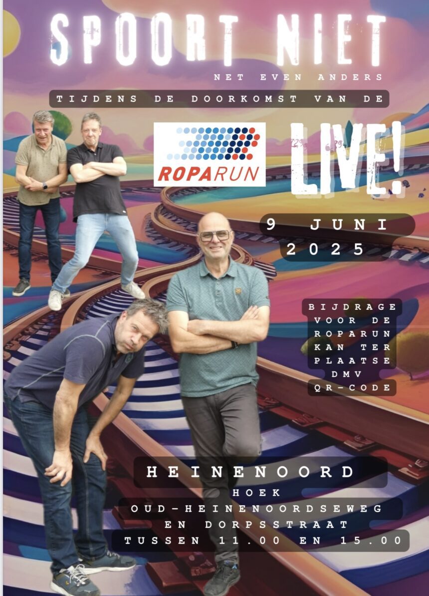 Muzikale Roparun-doorkomst in Heinenoord met ‘Spoort Niet’