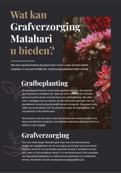 Grafverzorging Matahari biedt de mogelijkheid om het graf van een overledene of uw dierbare er verzorgd uit te laten zien.