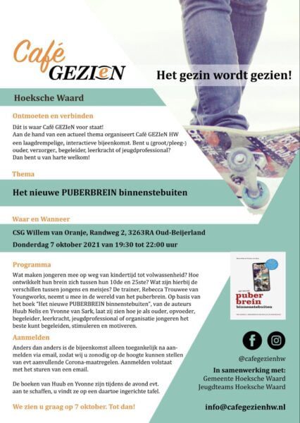 Oud-Beijerland - Op donderdag 7 oktober 2021 organiseert Café GEZIeN HW, in de Week van de Opvoeding, de eerste post-Covid bijeenkomst in het gebouw van CSG de Willem van Oranje.…
