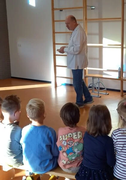 Aftrap van de Kinderboekenweek op Kindcentrum de Blieken in Klaaswaal met voorstelling door verhalenschenker Nico van Lent