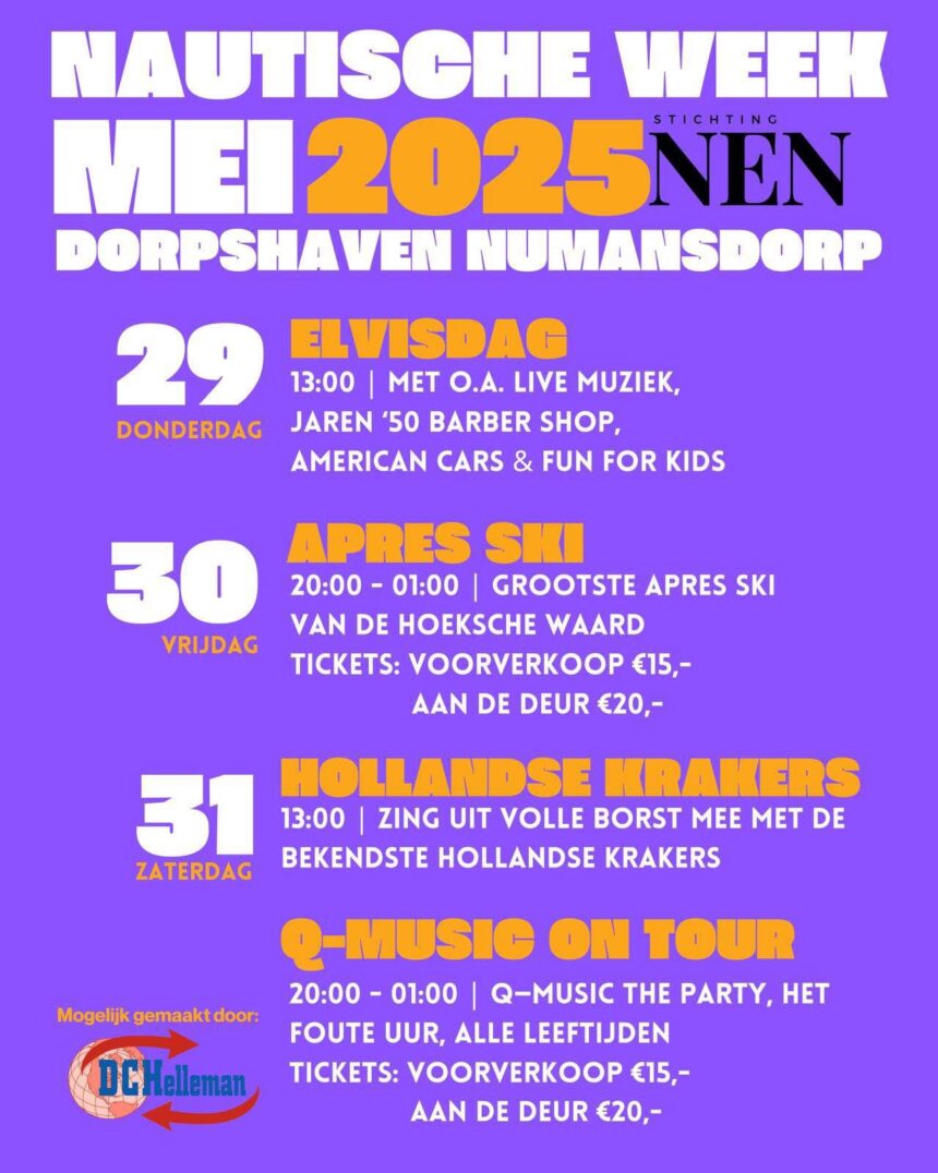 Een lang weekend vol muziek, gezelligheid en feest aan het water in Numansdorp! Zet het in je agenda, want dit mag je niet missen:
