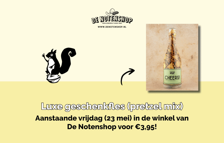 Wil je iemand bedanken of ben je op zoek naar een speciaal cadeau voor een feestelijke gelegenheid? Met deze luxe geschenkfles vol pretzels, ga je gegarandeerd iemand blij maken! Scoor…