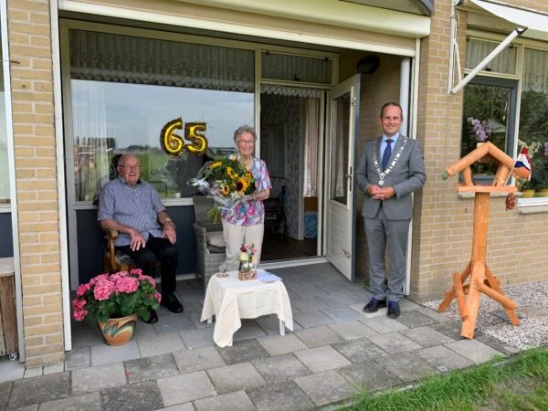 Strijen - Op 6 september 65 jaar geleden stapten Jaap (91) en Riena (85) de Penning-Kruithof in het huwelijksbootje. Burgemeester Bram van Hemmen ging met een mooie bos bloemen onder…