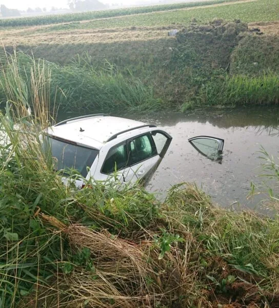 Heinenoord - Op zaterdagmorgen omstreeks 7.24 uur is een bestuurder door onbekende reden door het land gereden en tot stilstand gekomen in de sloot.