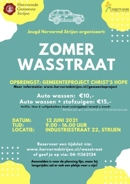 STRIJEN - Jeugdclubs 't Zoldertje en Soos Perspectief van de Hervormde gemeente Strijen organiseren op zaterdag 12 juni 2021 een zomer wasstraat! De opbrengst van de actie gaat naar het…
