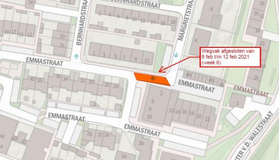Heinenoord - In verband met werkzaamheden is de Emmastraat, in de periode van 8 februari tot en met 26 maart 2021, gedeeltelijk afgesloten.
