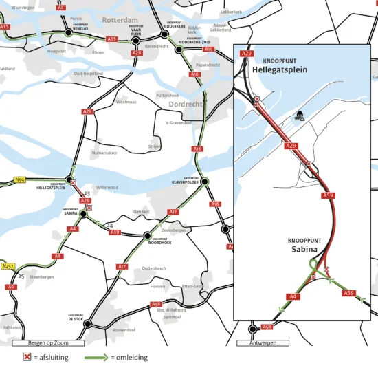 Werkzaamheden A29 richting Rotterdam weekend 23-26 april 2021