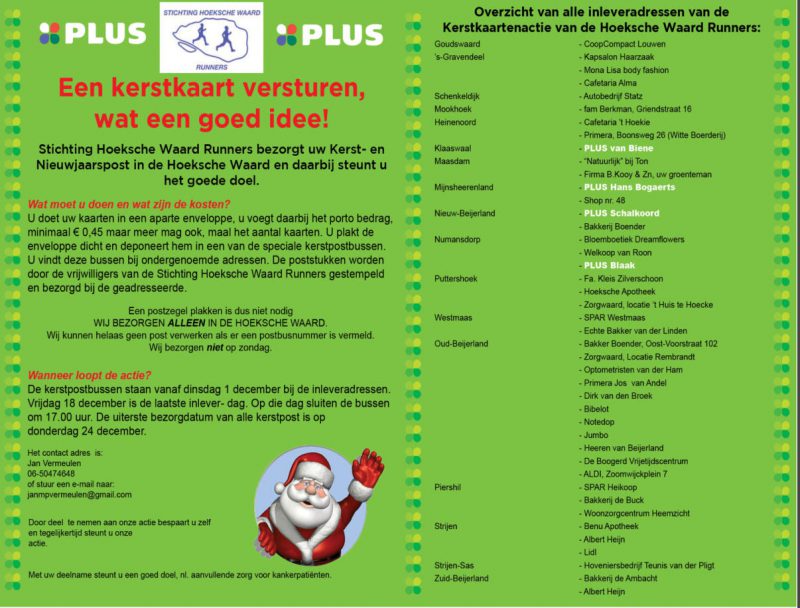 Stichting Hoeksche Waard Runners bezorgt ook dit jaar uw Kerst en Nieuwjaarspost in de Hoeksche Waard