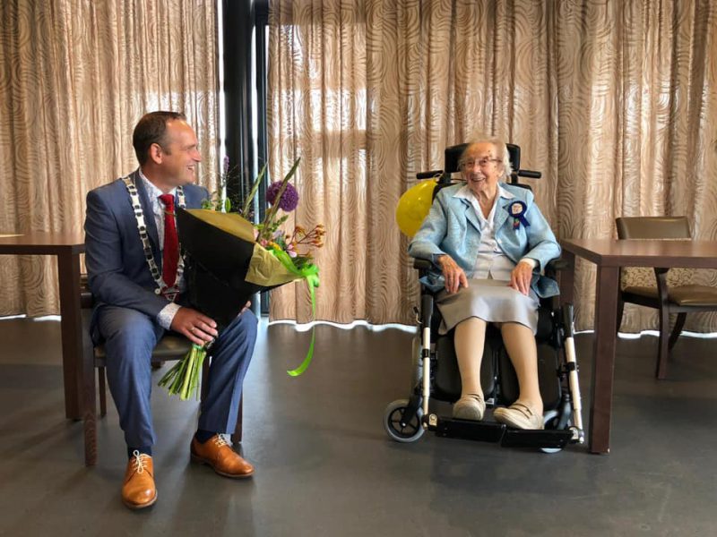 STRIJEN - Vandaag is mevrouw Trouwborst-Barendrecht maar liefst 103 jaar geworden! ? Om haar te feliciteren heeft burgemeester Bram van Hemmen een bloemetje voor haar meegebracht.