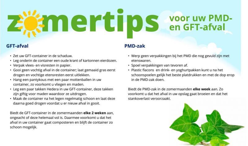 In de zomermaanden kunt u met het warme weer te maken krijgen met stankoverlast van uw container. Het RAD geeft u graag een aantal tips om dit zoveel mogelijk tegen te…