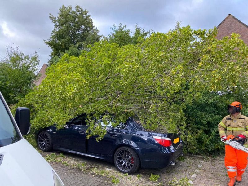 Boom valt op auto in Mijnsheerenland, inzittende kwamen met de schrik vrij