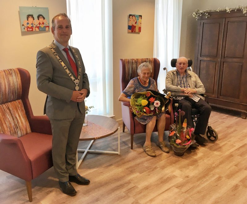 Oud-Beijerland - Dorpswethouder Paul Boogaard feliciteerde het echtpaar Molendijk-van Vliet met hun 60-jarig huwelijk. Hij bracht een mooie bos bloemen mee naar het felicitatiebezoek.