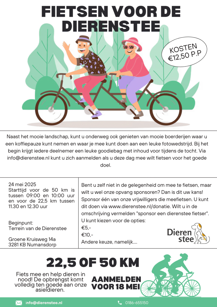 Fietstocht voor het goede doel: ‘Fietsen voor de Dierenstee’ op 24 mei