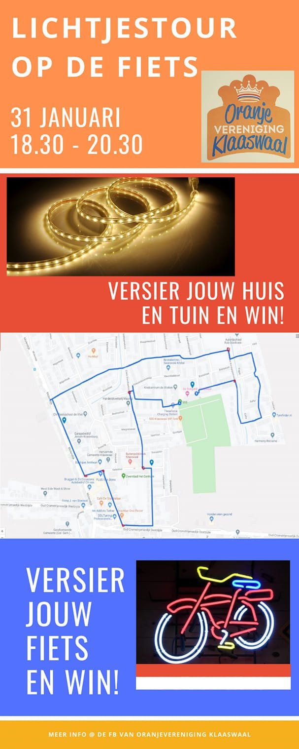 Klaaswaal - Oranjevereniging Klaaswaal organiseert vrijdagavond 31 januari 2020 een lichtjestour op de fiets door Klaaswaal.
