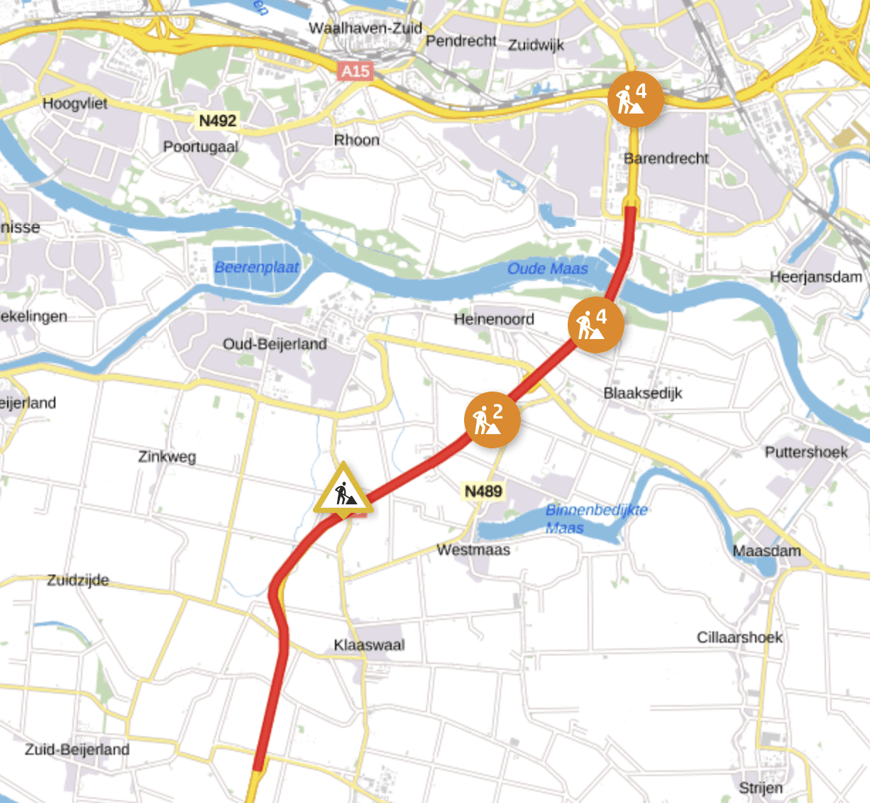 Slechte bereikbaarheid RAD Hoeksche Waard in September en Oktober vanwege start werkzaamheden aan de N489