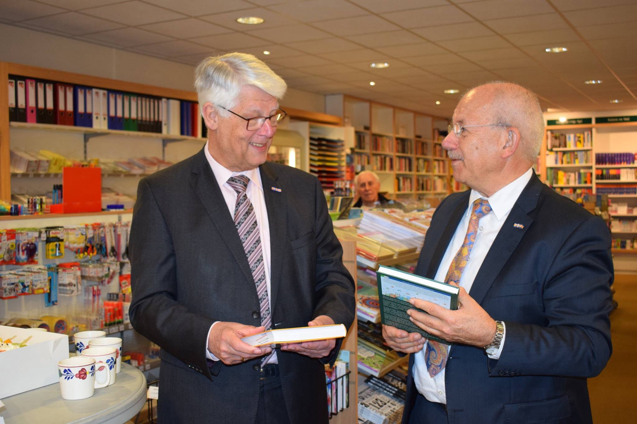 Hessel Visser overhandigt 1e exemplaar van het boek Werken met Logistiek aan wethouder Piet van Leenen