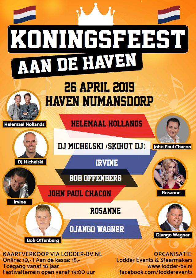 NUMANSDORP - Op vrijdagavond 26 april wordt er in de Haven van Numansdorp een gezellig koningsfeest georganiseerd. Vanaf 19.00 uur tot 02.00 uur zijn er optredens van diverse artiesten waaronder…