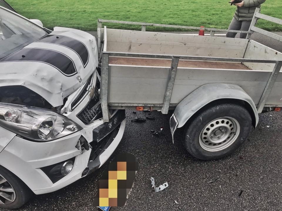 Oud-Beijerland - Bij een kop-staart aanrijding op de N217 Kwakscheweg in Oud-Beijerland op donderdagmiddag werd er een geleende aanhangwagen aangereden na een noodstop. 1 persoon is door de ambulance nagekeken…