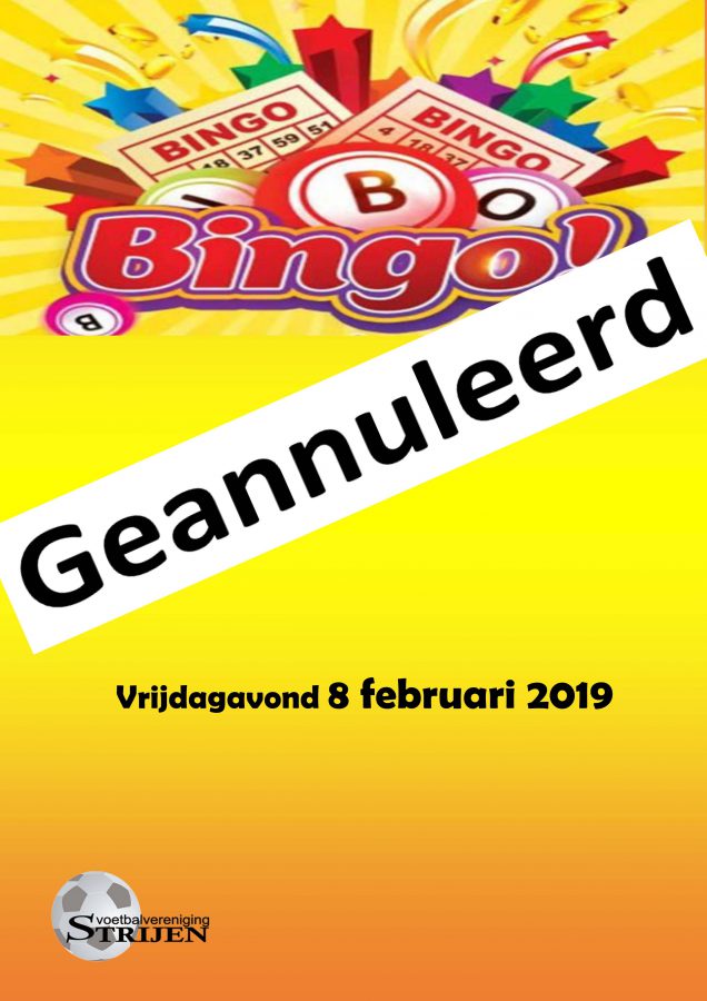 Strijen - Wegens omstandigheden heeft organisatie van de Bingo bij de Voetbal Vereniging Strijen moeten besluiten om de bingo van komende vrijdag 8 februari niet door te laten gaan. De…