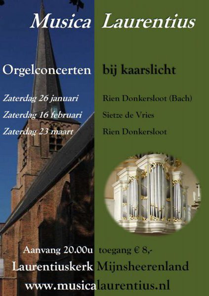 Mijnsheerenland - Op zaterdag 26 januari vindt het eerste orgelconcert van het nieuwe seizoen plaats.Het is het eerste in een reeks van drie "Orgelconcerten bij kaarslicht". 'Huisorganist' Rien Donkersloot verzorgt…