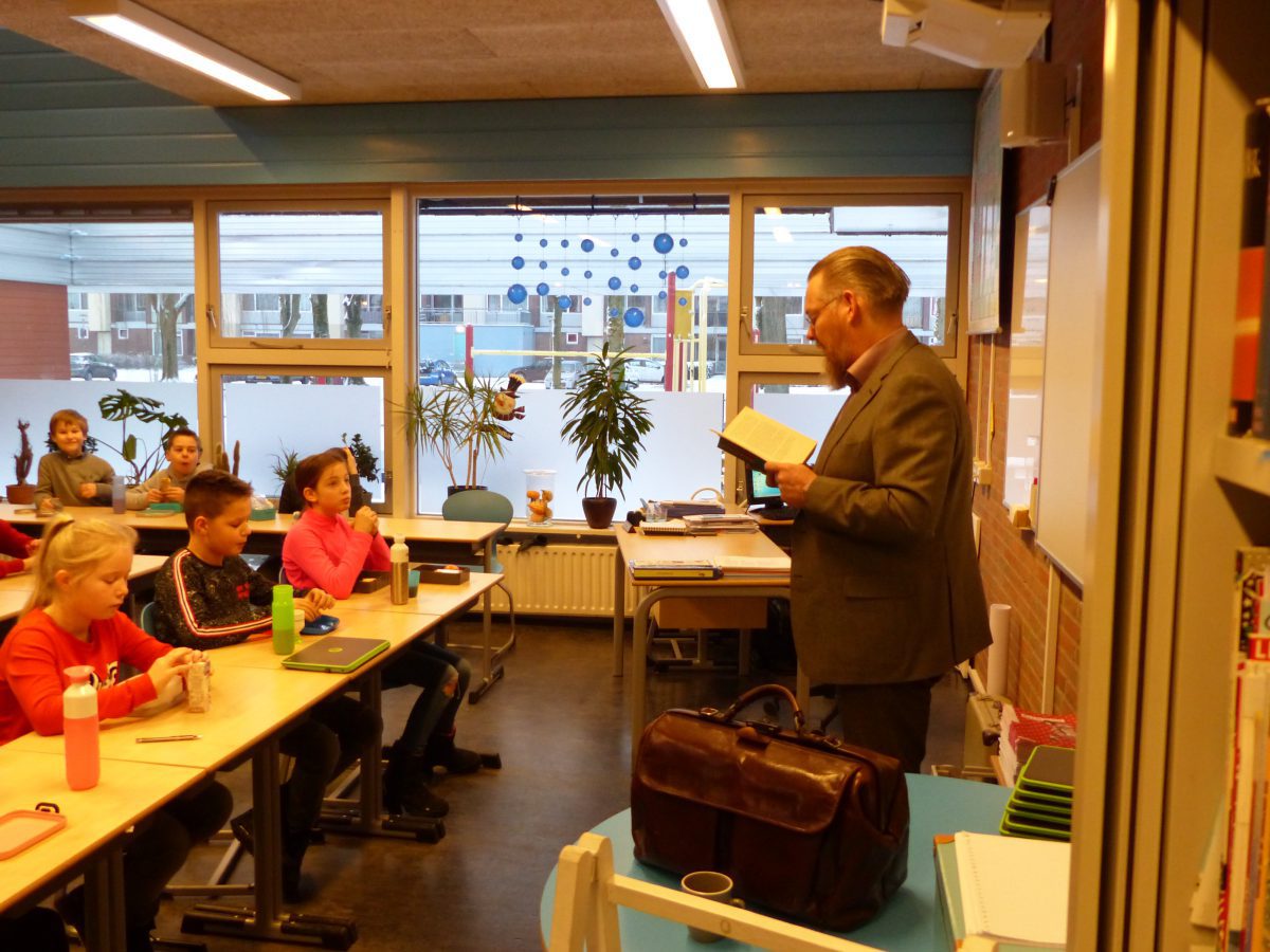 Gemeente Hoeksche Waard wethouder Huibert Steen leest voor op de Bouwsteen
