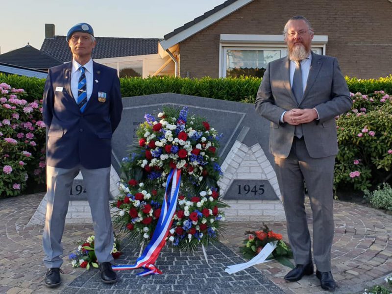 Klaaswaal – Dodenherdenking is dit jaar anders dan andere jaren. De traditionele kranslegging kon, in aangepaste vorm, wel doorgang vinden. Namens Gemeente Hoeksche Waard mocht wethouder Huibert Steen samen met de voorzitter van de Oranje Vereniging Klaaswaal een krans leggen bij het oorlogsmonument in Klaaswaal Veteraan Aloys Bijl legde een bloemstuk neer.