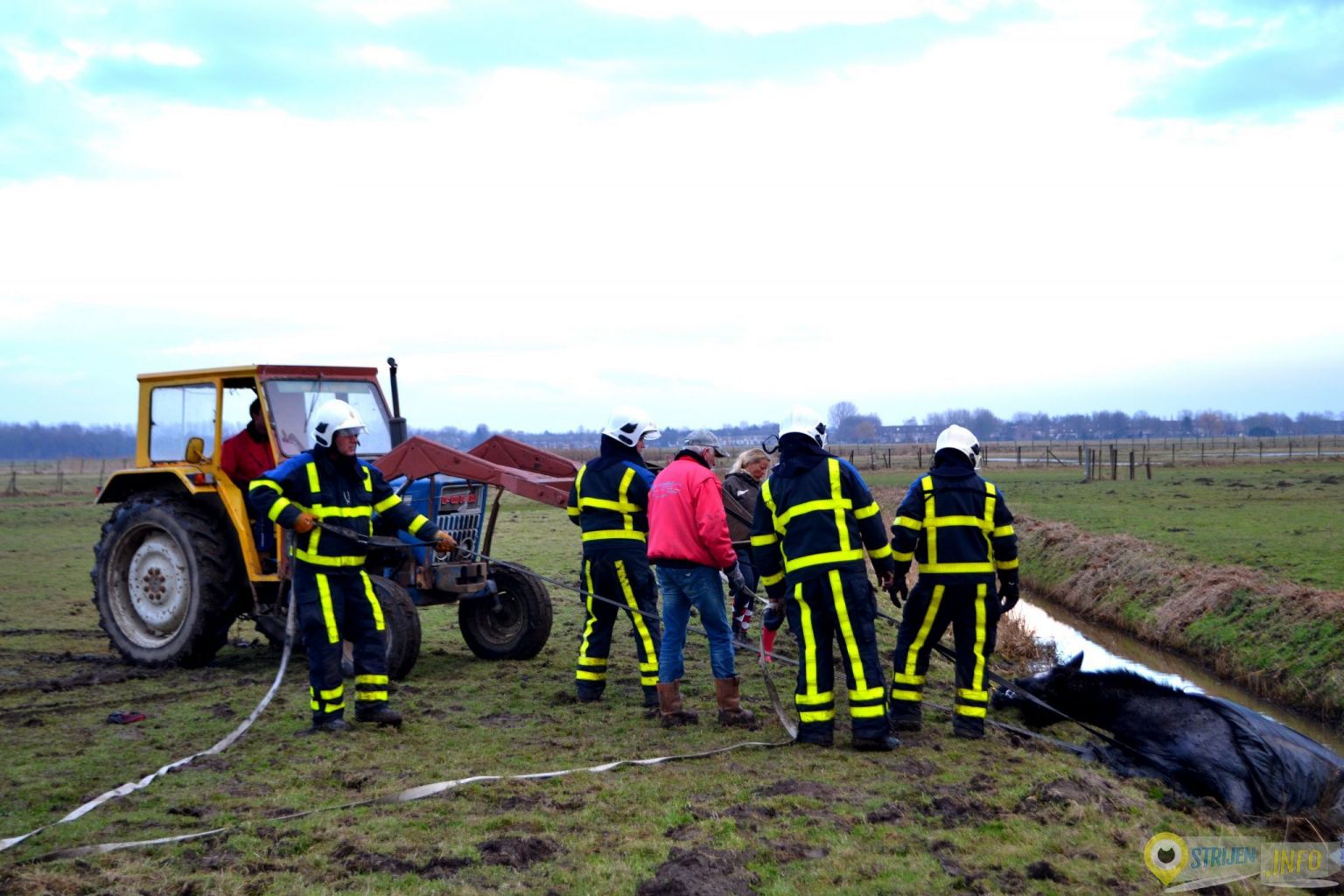 Paard aan de Bovenweg in Strijen gered uit sloot