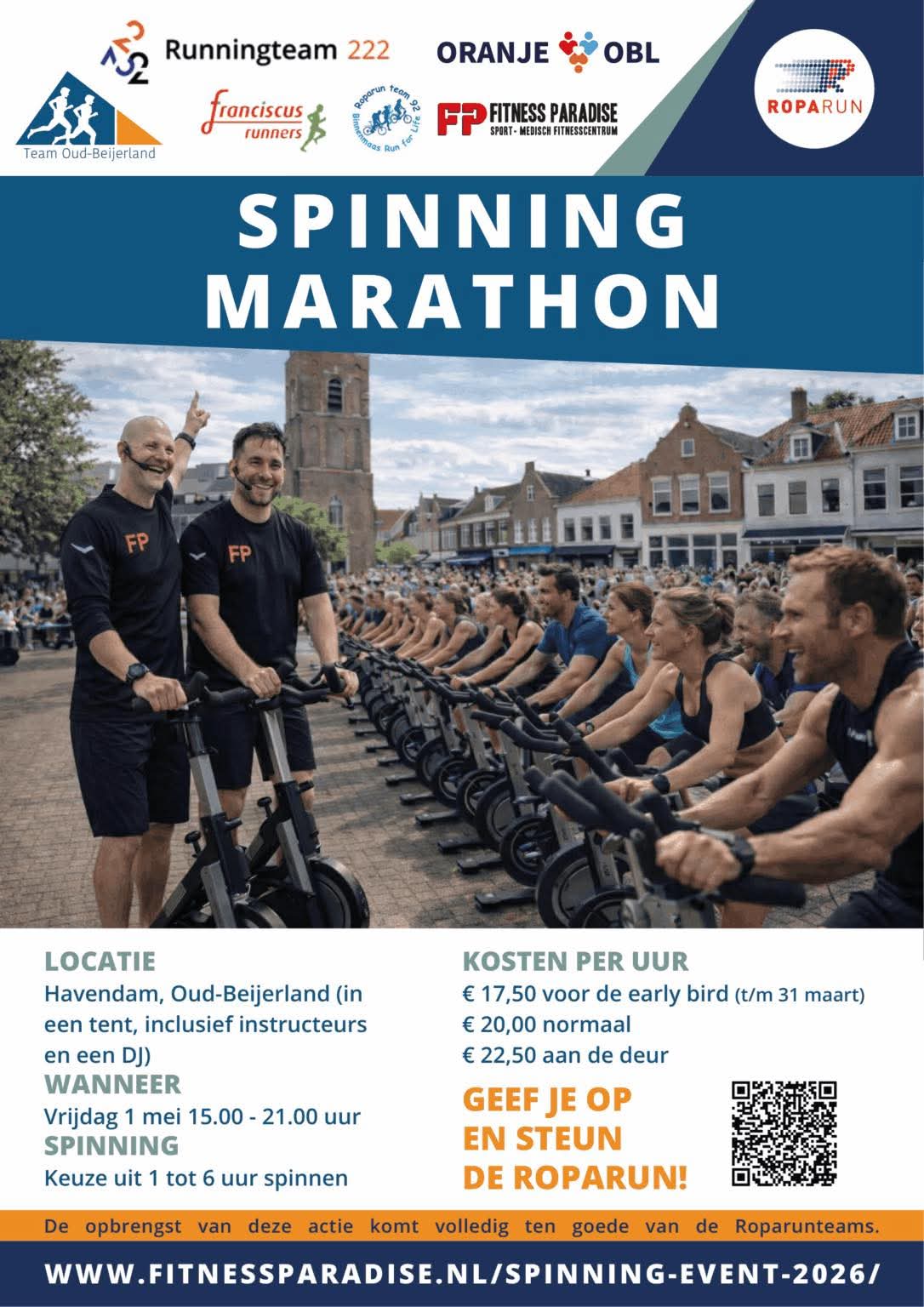 Aanmelden kan via: https://www.fitnessparadise.nl/spinning-event-2026/