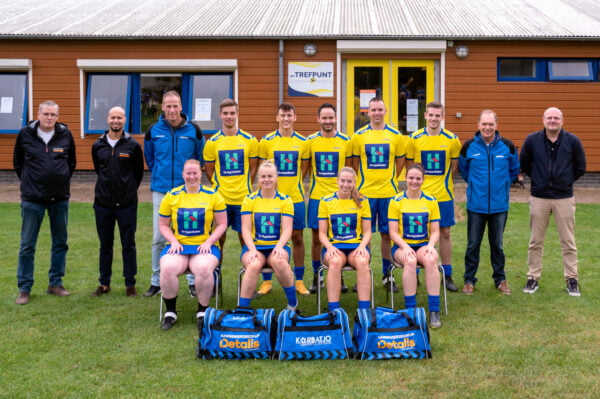 Ruim voor de wedstrijd was er een feestelijk moment, want de eerste keus van trainer Marcel Versteeg kreeg nieuwe kleding overhandigd van de nieuwe hoofdsponsors De Hypotheker en Aannemersbedrijf Detalis.
