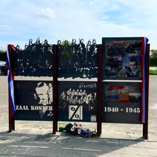 Zaal Koster was zo niet alleen een schuilplek, maar een “hub” voor het verzet. Logistiek heel belangrijk en invloedrijk.Het is een prachtig paneel geworden, staanders zijn oude rails van de oude tram en de afbeeldingen helemaal in jazz stijl uit die tijd. En de eerste noten van ‘In the mood’ van Glenn Miller ontbreken natuurlijk niet