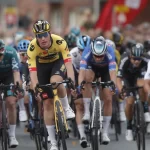 Paula van Wanrooy kreeg de lopers en loopsters jammer genoeg niet makkelijk aan de praat. Ze leken wel een beetje verlegen. Behalve onze plaatselijke diehard-fan Jo Dohmen, die is beslist niet verlegen. Hij overhandigde Paula een boeketje rode rozen. Ze kreeg er een dikke knuffel bij. Als lid van de wijkraad van Heijplaat mocht Jo natuurlijk niet ontbreken op ‘zijn plein’.